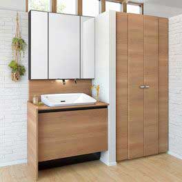 洗面所内装と洗面台が汚れにくくキレイが続くようにリフォームをご提案